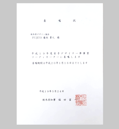 9. 功績評価にて県知事よりデザイナー事業コーディネーター兼講師の任命続投